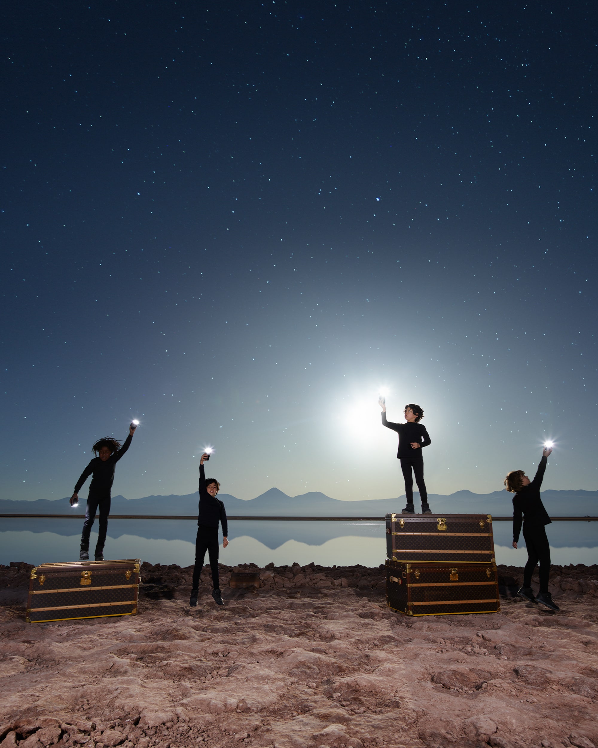 Louis Vuitton embarks on a far-reaching journey, exploring dreamlike settings around the globe in an evocative ode to the inner child. Traversing wild American landscapes, photographer Viviane Sassen captures a young boy and his band of friends as they set out an adventure, with the iconic Louis Vuitton trunk as their imaginary vessel. From the dunes of White Sands, New Mexico, to the woods outside of Austin, Texas, perspectives are played with, shadows enlivened, and nature harnessed.