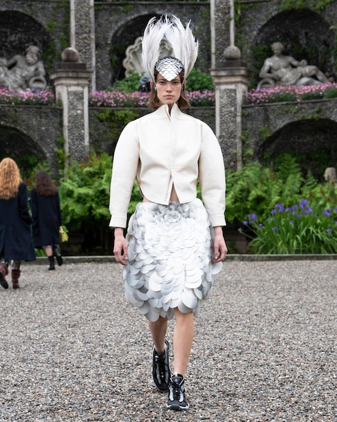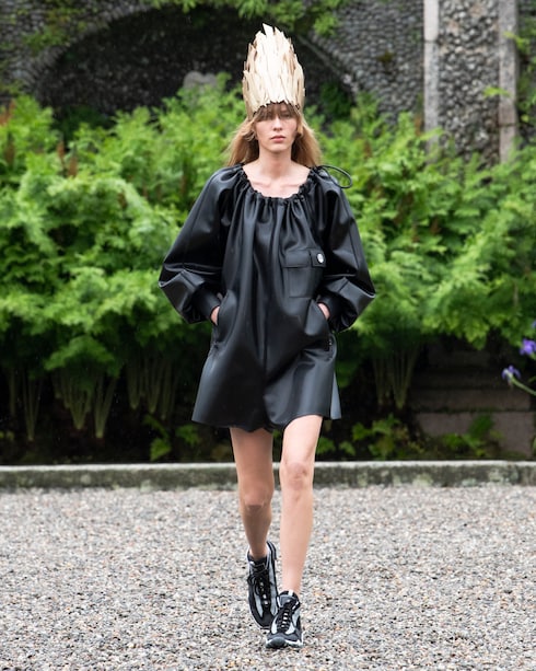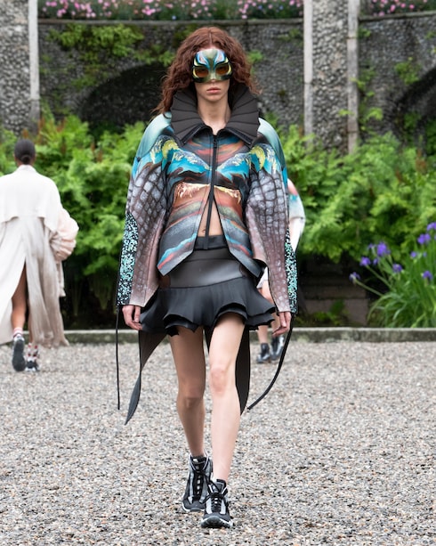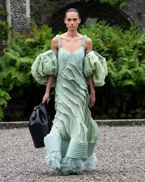 Imagined as a tale of the extraordinary, the collection is open to a myriad of influences revealing a hybrid elegance of baroque opulence and neoprene. Like Isola Bella, a ship of greenery sailing between myth and reality, Nicolas Ghesquière finds the new balance of a contemporary femininity and ultra-romance in this paradoxical notion.