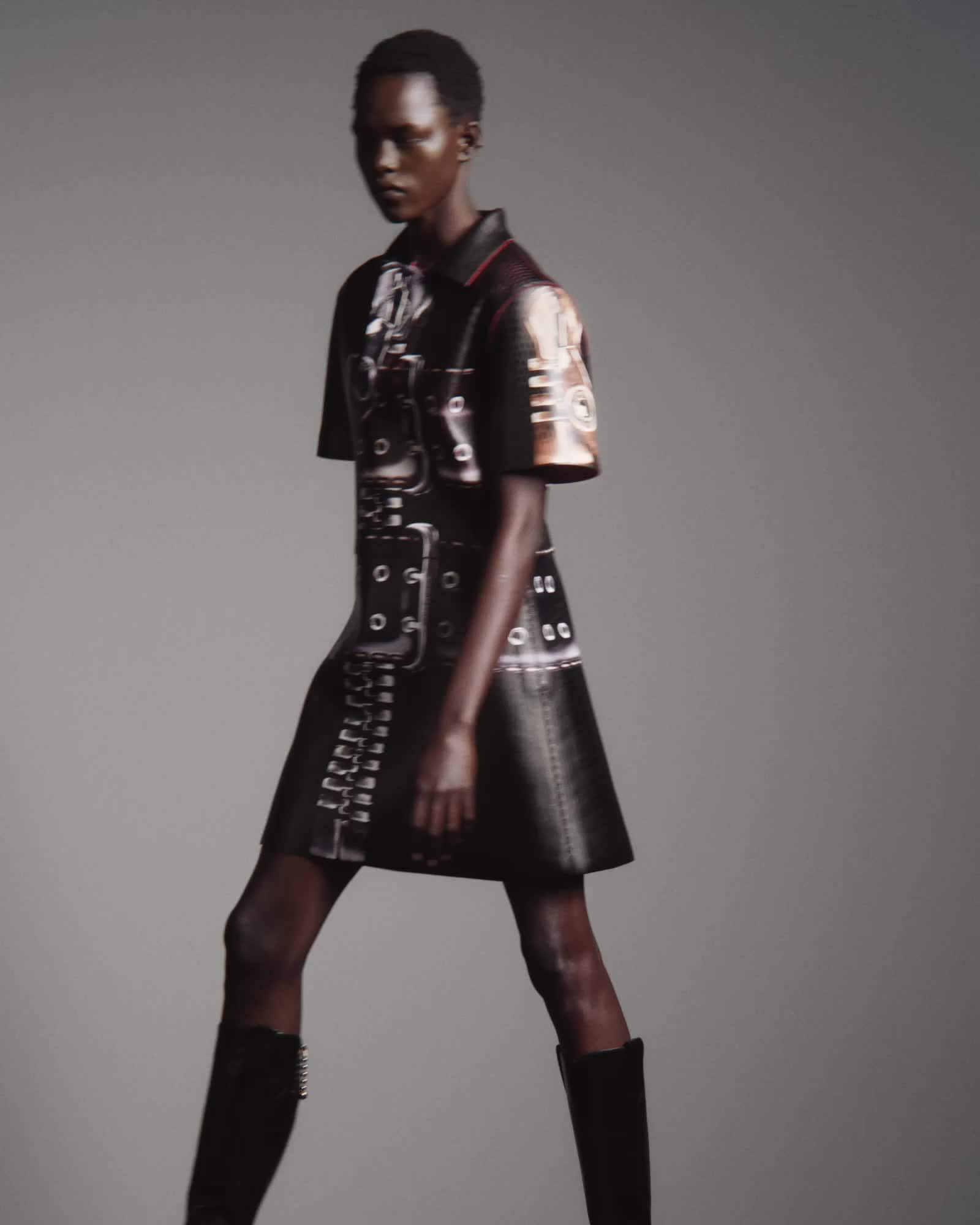 Putting femininity in the spotlight, the Spring-Summer 2023 Collection changes the play of proportions, using emphasis as of a figure of style, where the infinitely large and infinitely small come together in one silhouette. The Maison’s signatures that have become ingrained in Louis Vuitton’s DNA take on a disproportionate quality, becoming integral to the collection’s narrative. Finding this new balance in scale, zippers and snaps are outsized, clasps become belt buckles, and a scrap of leather is turned into an outfit.