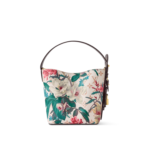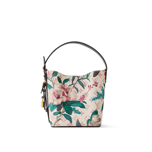 Reimagined as part of the Monogram Eden collection, this All In BB is crafted from Monogram Dune canvas elevated with a vibrant floral pattern. The classic bucket-shaped profile is trimmed with cowhide and accented with a gold-toned padlock and signature LV name tag. Inside, there is a removable zipped pouch and enough space to store a phone, wallet and keys.