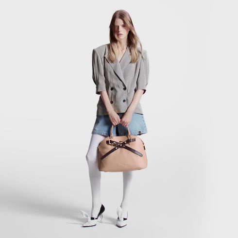 To celebrate the Alma’s 90th birthday, Creative Director Nicolas Ghesquiere created an ultra-supple version: the Alma 103 in calfskin. Unveiled at the Spring-Summer 2024 Show, it features a roomy interior and crafted details like the sliding leather belt closure, adorned with engraved LV rivets. It has two top handles for shoulder, elbow, or hand carry.