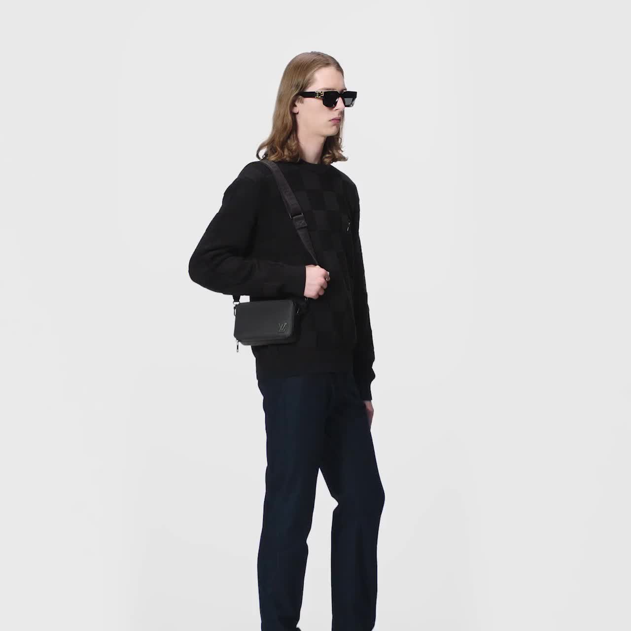 The versatile Alpha Wearable Wallet is fashioned from grained calf leather with discreet black hardware. Comfortable to carry, thanks to its adjustable and removable strap, it opens to reveal a gusseted interior large enough to hold two phones as well as cash, cards and other small essentials.