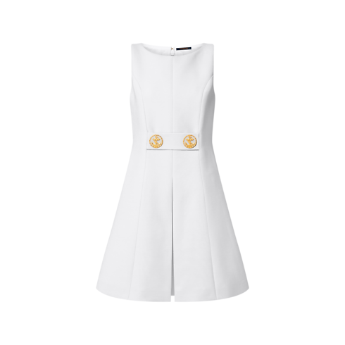 Seasonal signatures refresh this elegant dress with a sophisticated nautical air. It is crafted from structured wool-silk cady crepe in a timeless shade, complete with a tonal silk lining. The A-line silhouette is emphasized with an inverted box pleat at the front, while the waist is embellished with two oversized golden anchor buttons.