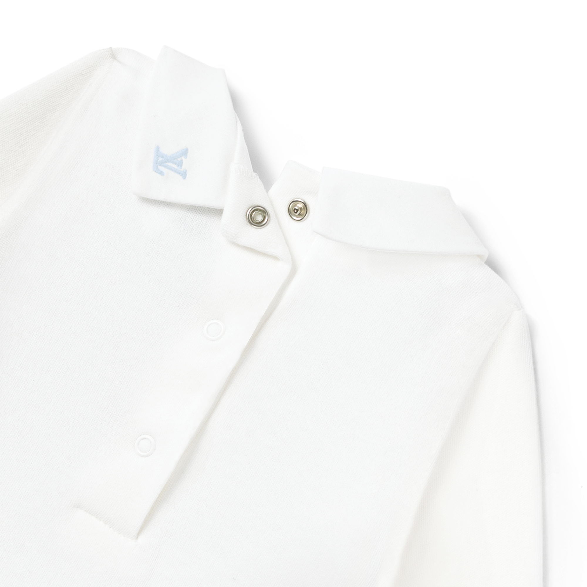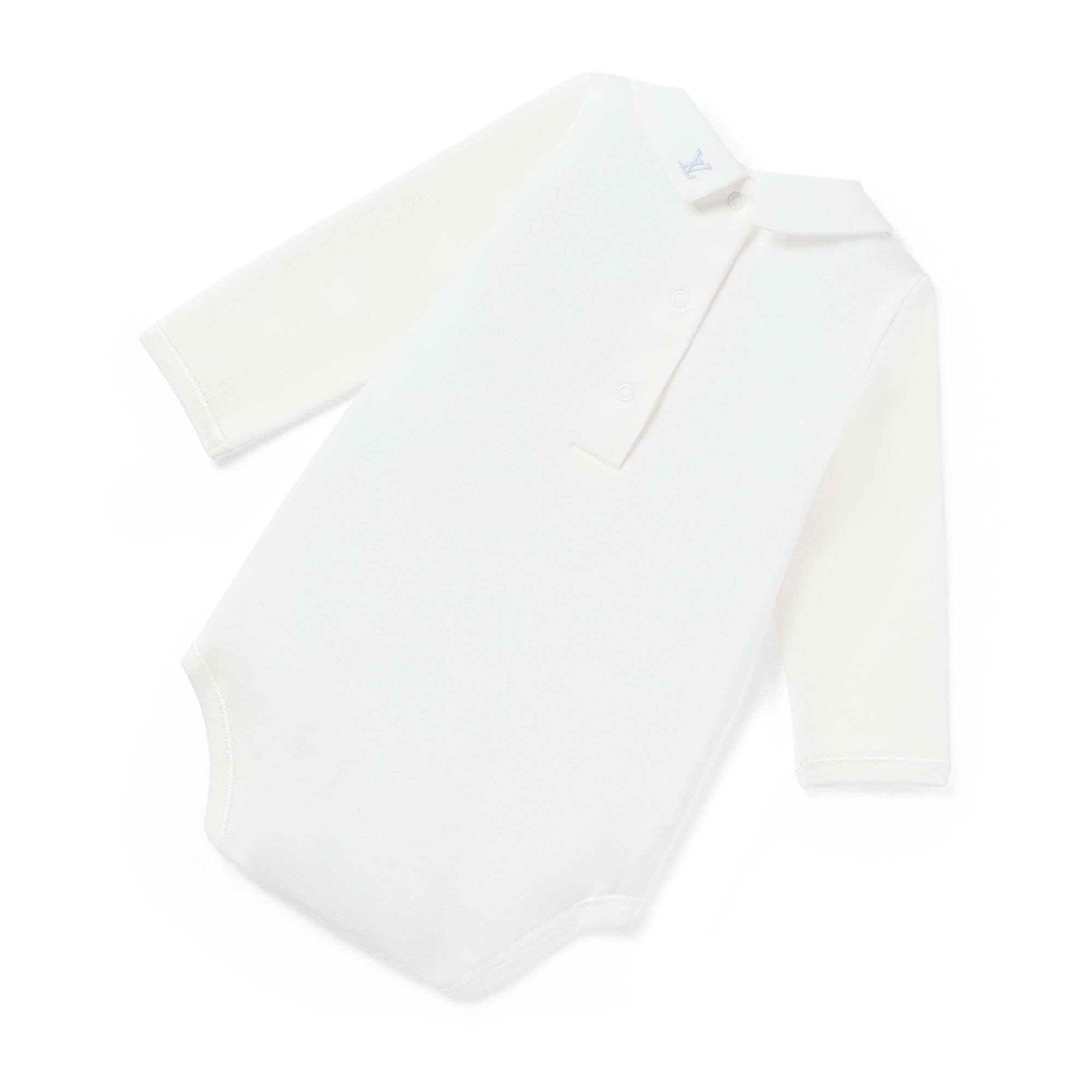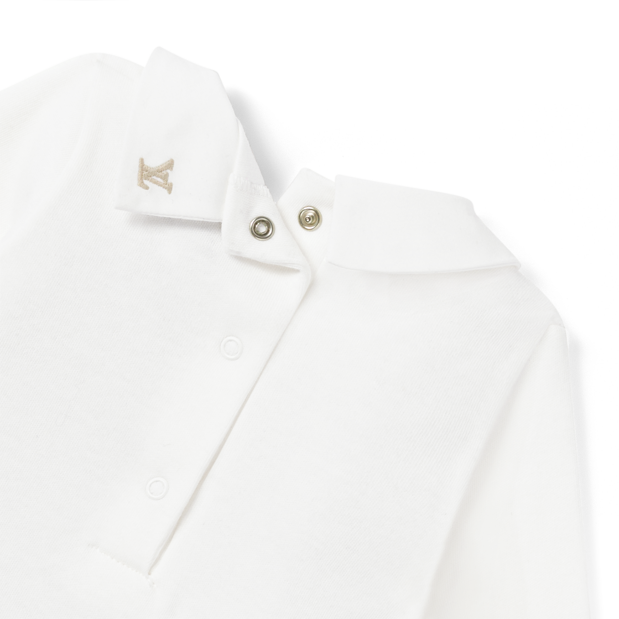 Part of the Louis Vuitton Baby collection, this 2 Round-Collar Bodies Set comes in pure, certified cotton for softness and comfort. This everyday essential is elevated by the tiny, embroidered Monogram Flowers which decorate the collar: petal-pink on one body, multicolored on the other.