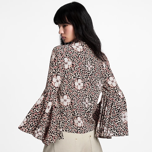 This button-up blouse exudes sophistication in soft silk crepe de chine printed all over with a graphic botanical print detailed with the House’s signature Monogram Flower accents. The smart, tapered fit is offset by the generous lavallière neck tie and the airy volume of the lower half of the sleeves.