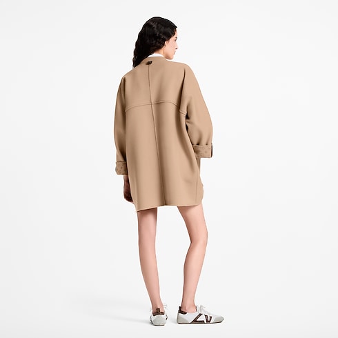 This boxy coat has a chic, minimal look with a clean neckline and two refined slit pockets. Cut from the House’s plush double face wool-silk in a warm shade of Savanah, complemented by Monogram canvas buttons. Tonal leather tabs allow the sleeves to be rolled up to reveal a glimpse of the Monogram jacquard that signs the inside.