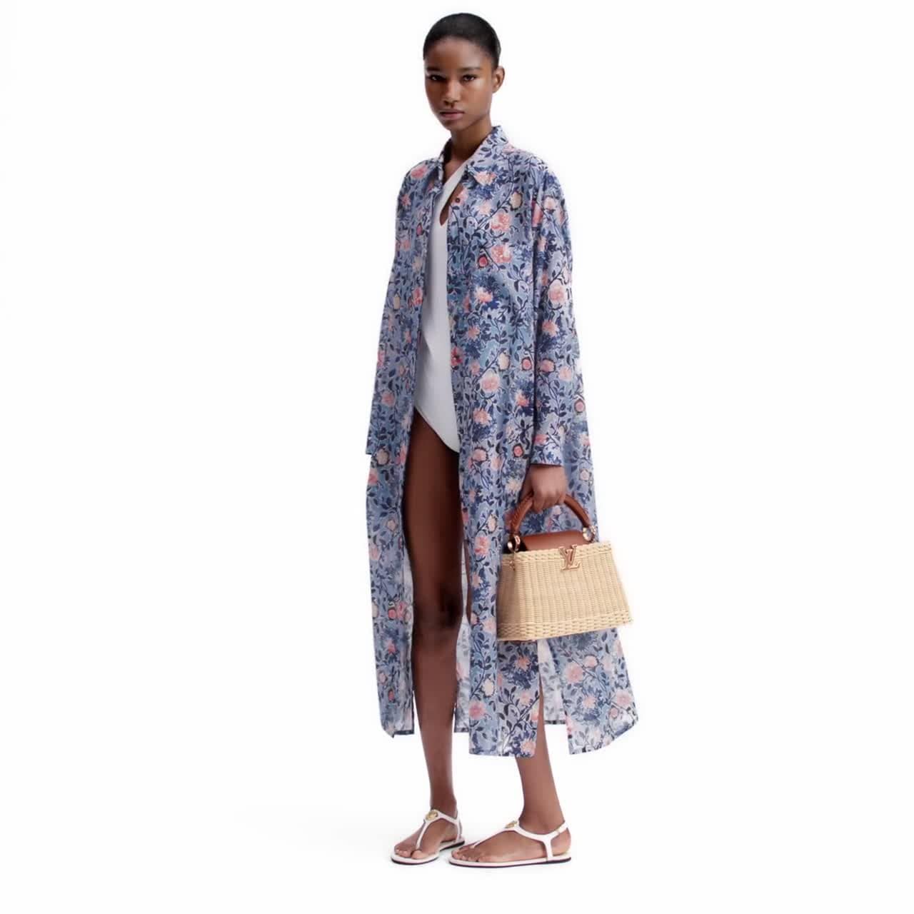 This Capucines BB is meticulously handwoven from rattan, with each one-of-a-kind design taking two days to complete. Lending a resort-inspired aesthetic, it is evocative of the House’s Picnic Trunk from 1892 and opens to reveal a patterned lining. It can be worn with the flap styled inside or out, and is sized to fit everyday essentials. The signature LV Initials add the final flourish.