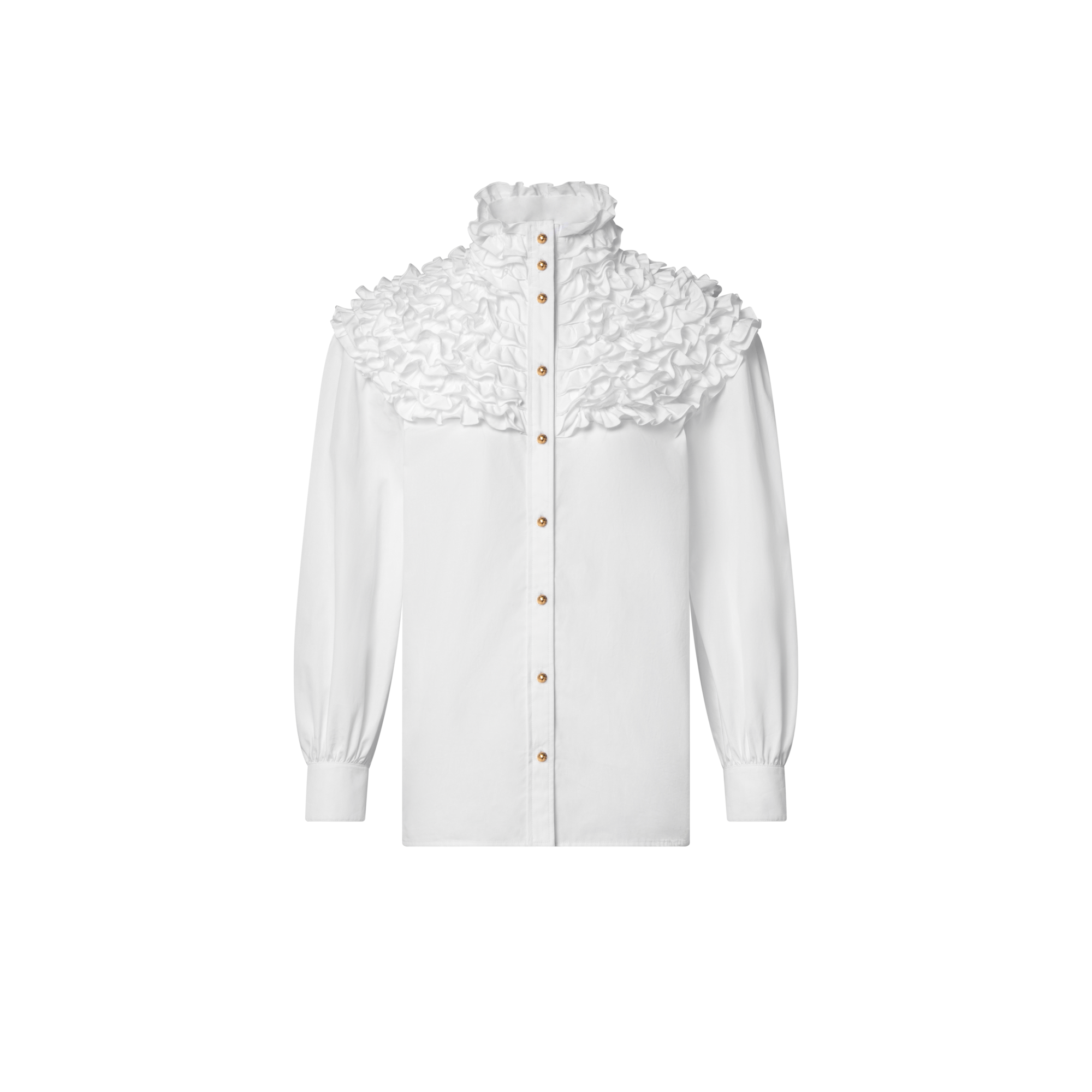 This mini skirt catches the eye in a sumptuous blend of wool, cashmere and silk in the runway’s graphic check motif. It is cut in a voluminous flared silhouette trimmed with a slim waistband. A leather LV Circle tab adds a subtle signature detail to the hip, while the back is fastened with an invisible zipper.