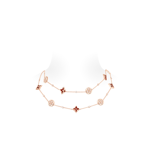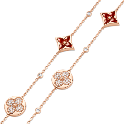 Created to celebrate the Lunar New Year, the Color Blossom BB LNY Long Necklace is a precious interpretation of the House's iconic Monogram signature. Set into 18-karat rose gold, this precious long necklace features Star motifs adorned with double-sided cornelian stones, complemented by Sun motifs encrusted with glistening diamonds. Months of work were necessary to perfect the stones’ subtle curves and sparkle. This limited-edition jewel echoes the traditional colors of LNY, symbolizing life, energy and renewal.