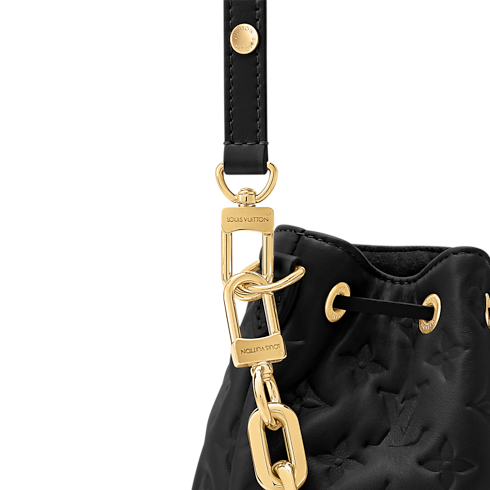 Introducing the latest edition to the Coussin family, the Bucket handbag offered in sophisticated Monogram-embossed lambskin. A feminine day-to-evening option, it is adorned with gold-toned hardware, including a signature LV padlock and a removable Coussin chain. The drawstring closure is both functional and stylish, and complements the bag’s multiple carry options.