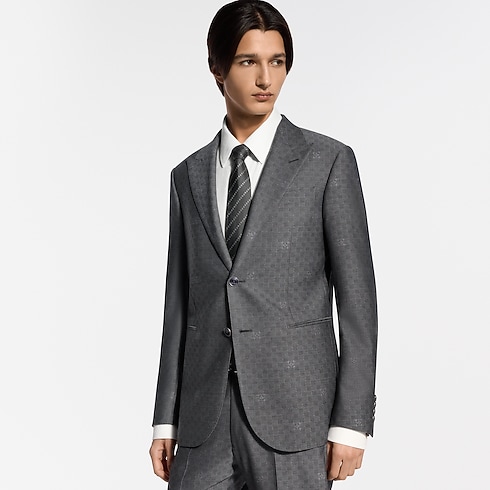 Elegantly tailored in a timeless dark gray, this single-breasted Pont Neuf jacket is ideal for formal business occasions. The fine wool features a sophisticated tone-on-tone Mini Damier Seeds jacquard motif incorporating Monogram Flowers with a softly dappled effect. A peak lapel and piped pockets enhance the streamlined silhouette, which makes a chic suit paired with matching pants.