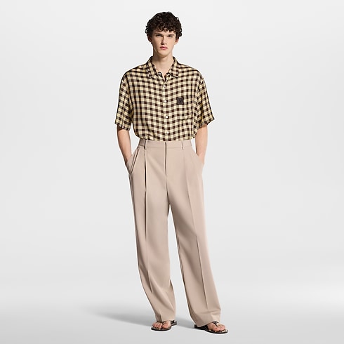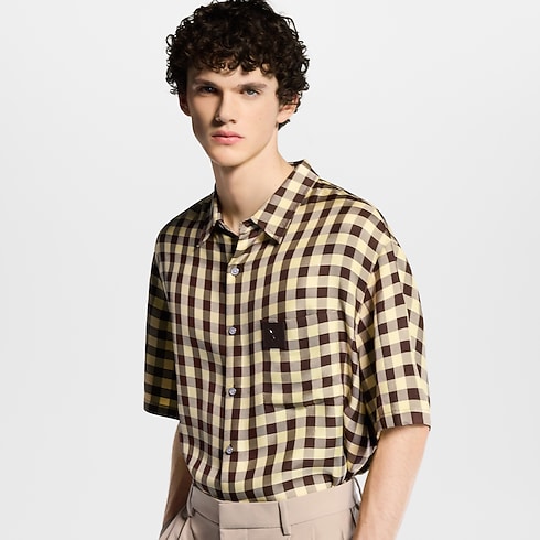 The bold, graphic style of this breezy, short-sleeved shirt is perfect for spring. Crafted from fluid crepe twill, it features a gingham check in heritage brown and pale vanilla yellow tones. A leather signature patch accents the chest pocket while pearly buttons add a lustrous accent. This striking piece brings a vibrant twist to timeless staples.