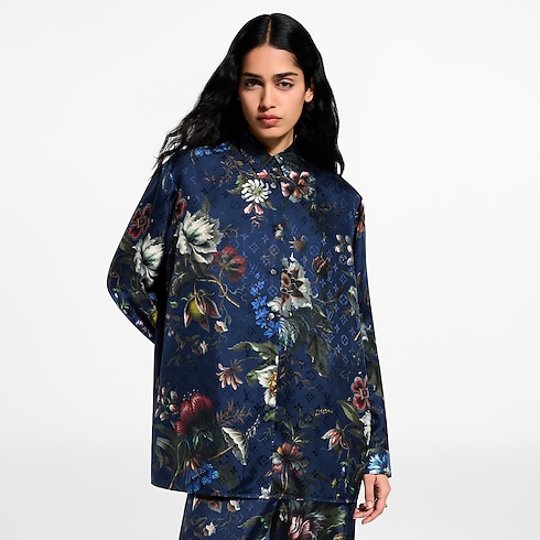 This elegant silk shirt is reimagined for the season in a moody floral print in midnight tones, while a lustrous Monogram jacquard adds a subtle allover signature. It is crafted in a breezy straight shape with a smart collar, fastened cuffs and button front for a classic tailored finish.