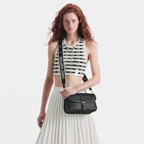 The Diane satchel is made from Monogram Empreinte, the Maison’s signature embossed leather. Fitted with a detachable leather strap for shoulder or hand carry, as well as a wide and removable jacquard cross-body strap with a woven "Louis Vuitton", this versatile bag can be styled in chic or sporty fashion, to match an ensemble or a mood.