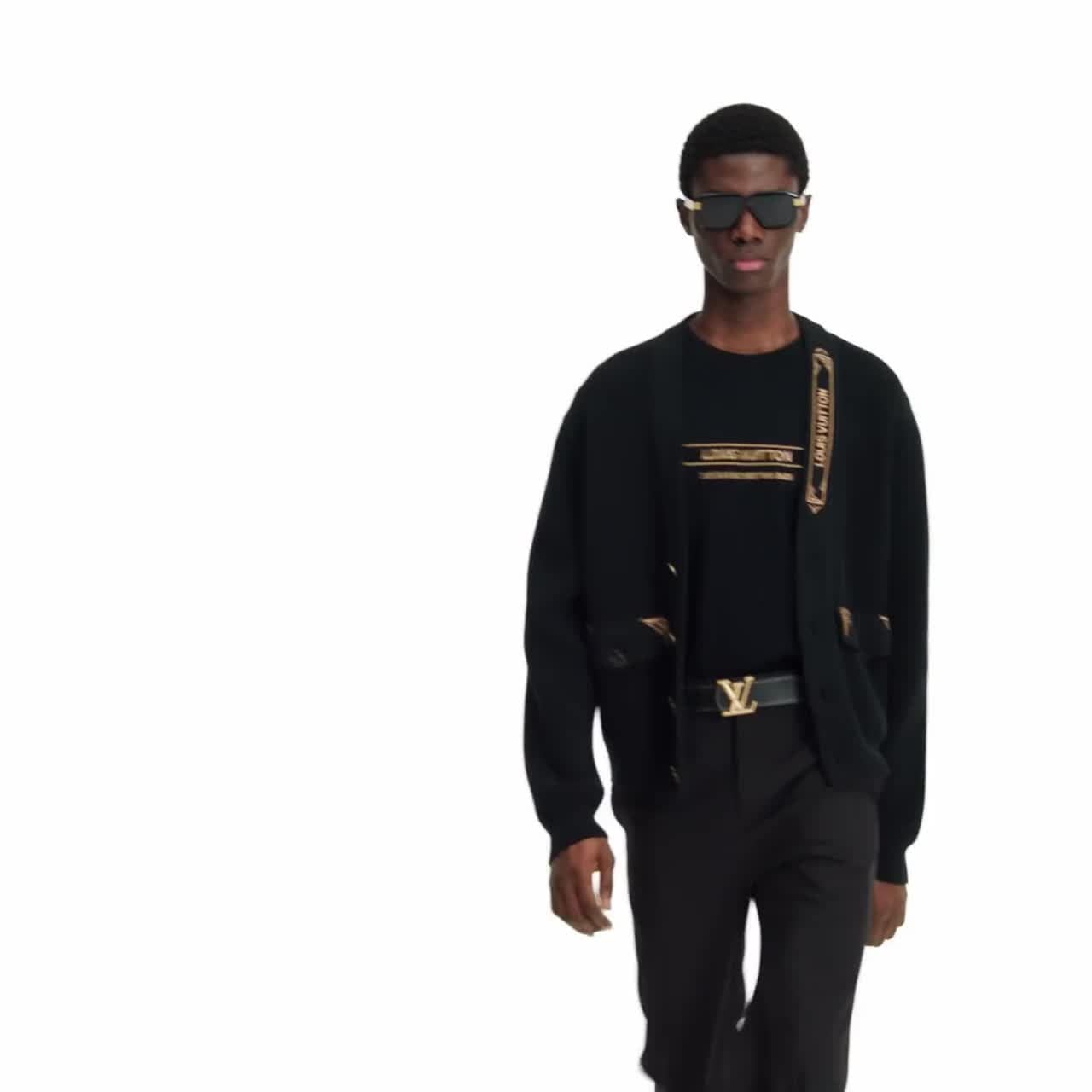 This elegant black cardigan is adorned with sophisticated golden embroidery, with a Louis Vuitton signature on the left collar and discreet Monogram Flower details on the flap pockets. The cotton blend ribbed knit is light and breathable for warmer days. This piece can replace a traditional jacket for a chic yet laid-back evening look aboard this collection’s cruise ship.