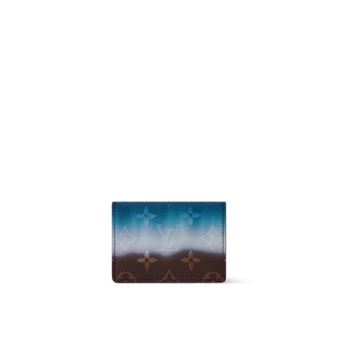Monogram Pigment coated canvas, blending vibrant color with the iconic Monogram, brings a modern edge to the Envelope Business Card Holder. A snap closure opens to reveal a cowhide leather-lined interior, complete with a card slot and a gusseted compartment for cards and small essentials.