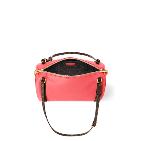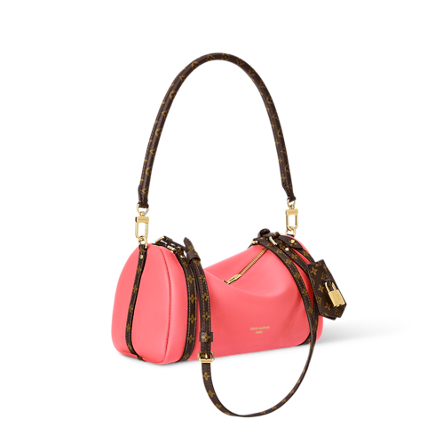 The Atomic Pink colorway on this Express PM makes a contemporary statement. It is crafted from calfskin and trimmed with signature Monogram canvas details, including a keybell and shoulder strap. The compact design is adorned with a gold-toned padlock that can also be attached to the zipper pull if desired. Inside, there is enough room to keep everyday essentials organized.