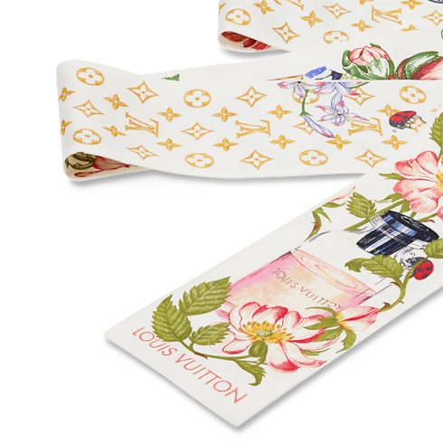 Crafted in sumptuous silk, the Fontaines Parfumées bandeau is a veritable celebration of elegance and creativity. Its intricate artistic pattern features delicate flowers in soft colors, mixed with images evoking a vintage perfume extractor. An easy-to-wear, ultra-feminine accessory, and an enchanting ode to the pleasures of the senses.