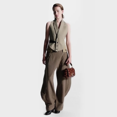 Nicolas Ghesquière explores new techniques to embellish the GO-14 MM handbag. Here padded lambskin is quilted, and a refined toasted effect is applied by hand, giving it a futuristic allure. The top handle and adjustable chain – both detachable – enable carry options. It’s signed with the House’s emblematic LV Twist lock.