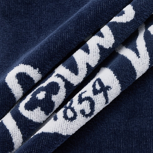 The golf towel adds a sophisticated element to the fairway. The navy blue style features the "Louis Vuitton Since 1854" signature and flag embroidery. The silvery hook affixes it to the bag or a belt loop so it stays close, within reach for cleaning clubs.