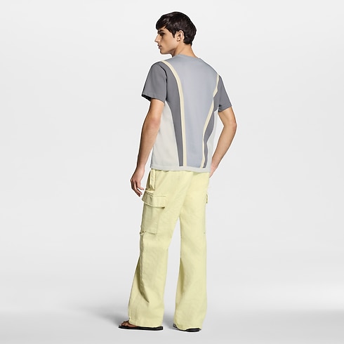 This graphic short-sleeved crewneck is elevated with a sporty intarsia knit in soft pastel color-blocked tones. Crafted in a flattering V-shape, the angles converge at the waist, while an embossed tone-on-tone LV signs the torso beneath the collar. Pair with collection’s relaxed pants or shorts to bring a sporty accent to an everyday look.