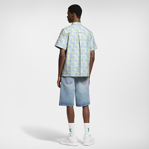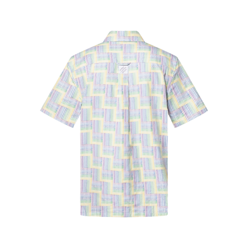 This breezy short-sleeved Oxford shirt is adorned with a graphic allover LV Stairs print featuring delicate Louis Vuitton lettering in pop colors in a subtle gradient effect. This modern style is perfect for spring paired with this collection’s preppy aesthetic. A Marque L.Vuitton Déposée label on the back adds a smart finishing touch.