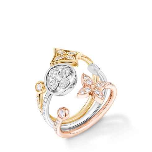 Idylle Blossom Paved Ring, 3 Golds And Diamonds