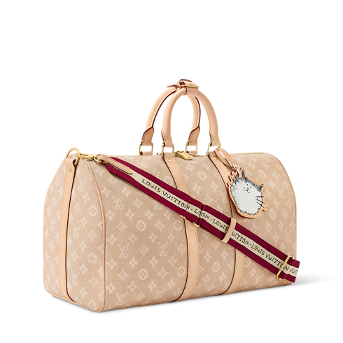 Part of the Travel With collaboration between Louis Vuitton and Grace Coddington, the Keepall Bandoulière 45 is crafted from Meowgram canvas, a vintage-inspired take on the Monogram motif, drawn from a House trunk dating back to the early 1900s. It’s finished with a cat name tag and a removable, adjustable strap featuring a hand-written House signature.