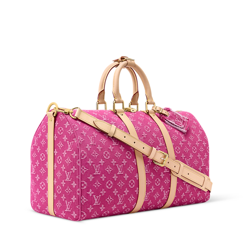 Inspired by a colorway from the House’s archives, this Keepall Bandoulière 45 comes in fuchsia Monogram Denim – a vibrant material that brings effortless style to any look. Natural cowhide leather on the side bands and top handles highlights its classic design, while a detachable and adjustable strap offers versatile carry options.