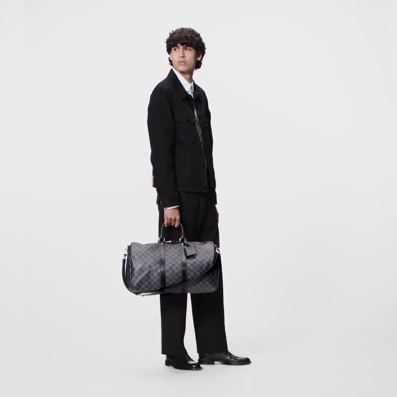 An elegant travel bag in Damier Graphite canvas. Ideal for travelling and taking all the necessities, this bag has a generous amount of space. Can be comfortably carried by hand or on the shoulder.