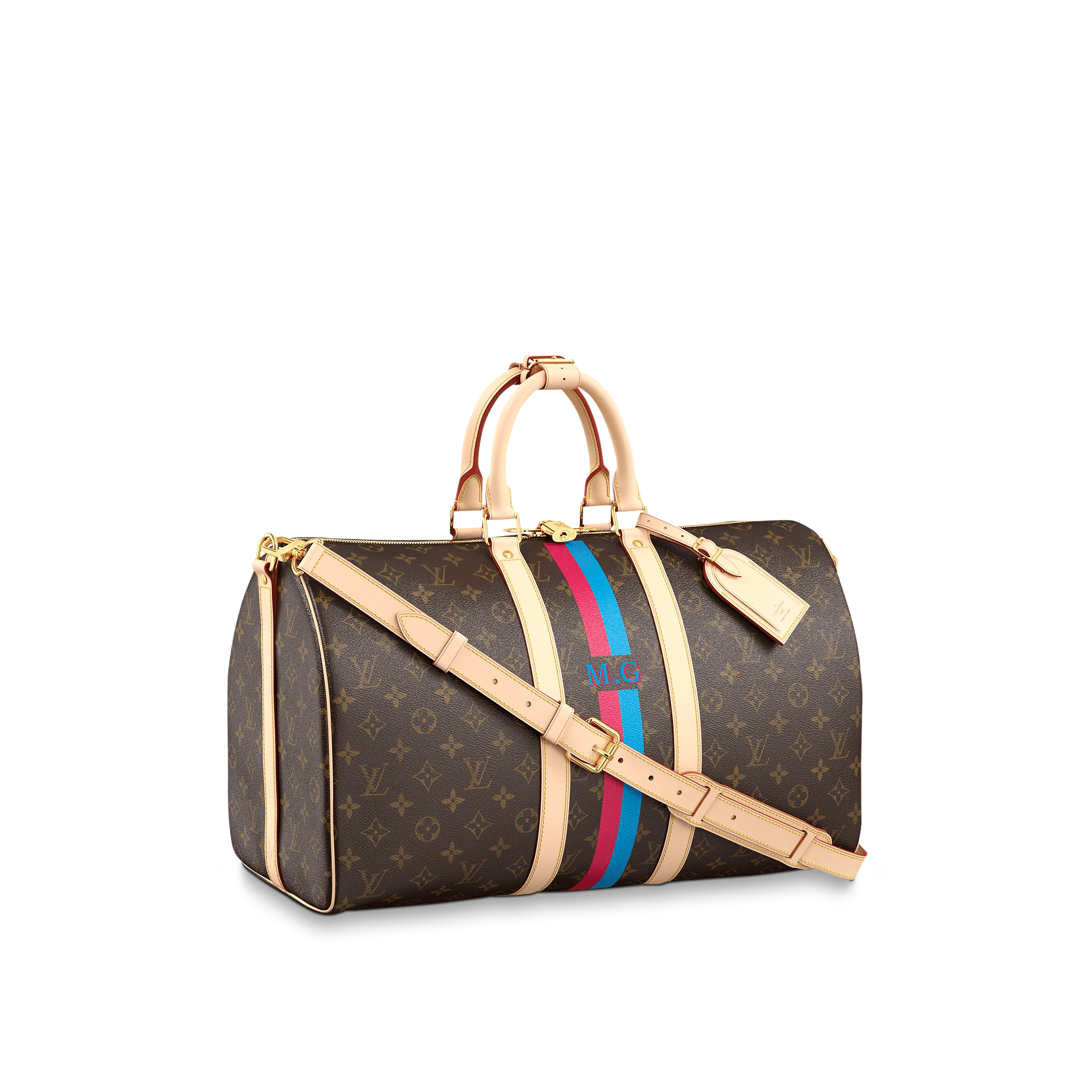 Travel light, but always in style. Since 1930, Vuitton's Keepall duffle has journeyed alongside generations of elegant globetrotters. This version, the smallest of the line, holds all the essentials for an overnight jaunt. In Monogram Canvas, with comfortable-to-hold leather handles, a strap for casual cross-body wear and a gleaming brass padlock.