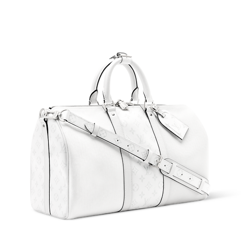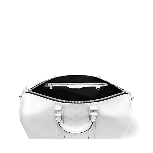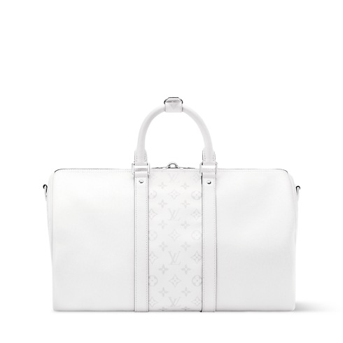 The Keepall Bandoulière 45 is crafted from Monogram coated canvas paired with matching-colored Taiga leather. The tone-on-tone colorway, combined with silver-tone hardware, brings a fresh feel to this practical overnight bag. Two rolled leather top handles and a removable, adjustable strap offer versatile carry options.