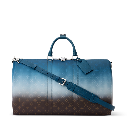 Inspired by India’s bold, colorful textiles, this Keepall Bandoulière 50 in Monogram Pigment coated canvas is a burst of chromatic joy. The Monogram Ebene motif is reworked with a gradient effect echoed across every detail. Cowhide leather trim, top handles, and removable strap are all rendered in the gradient’s deepest shade.