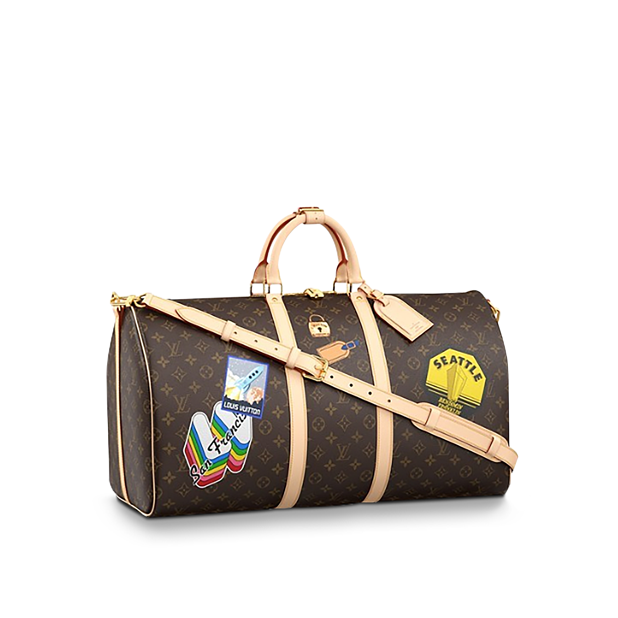 An icon since the appearance in 1930, the Keepall embodies the spirit of modern travel. Light, supple and always ready for immediate departure, the bag lives up to its name: those adept at the art of packing can easily fit a week's wardrobe into the generously sized (and cabin-friendly) Keepall 55. Shown here in classic Monogram Canvas, with a strap for casual cross-body wear