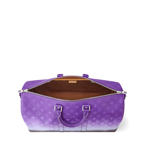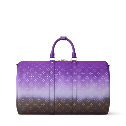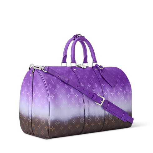 Taking the traditional Monogram Ebene to the next level, Monogram Pigment coated canvas brings bold color to this Keepall Bandoulière 45. The gradient color saturates the top and fades toward the base. Trimmed in cowhide leather, the top handles and removable, adjustable strap are dyed to match the most vibrant part of the design.