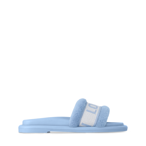 The LV Bliss comfort mule is characterized by its wide front strap in soft shearling, which is embellished with a jacquard ribbon featuring the Louis Vuitton signature. Designed for optimum comfort, this model has a leather-covered, anatomic footbed and a supple rubber outsole surrounded by leather piping.