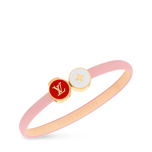 The casual-chic LV Confetti bracelet offers an eye-catching variation on the House’s beloved icons. Its slim leather strap features a colorful metal and enamel closure in the form of two confetti-like disks adorned with a Monogram Flower and the emblematic LV Initials. This fun, easy-to-wear bracelet adds a playful creative accent to any look.