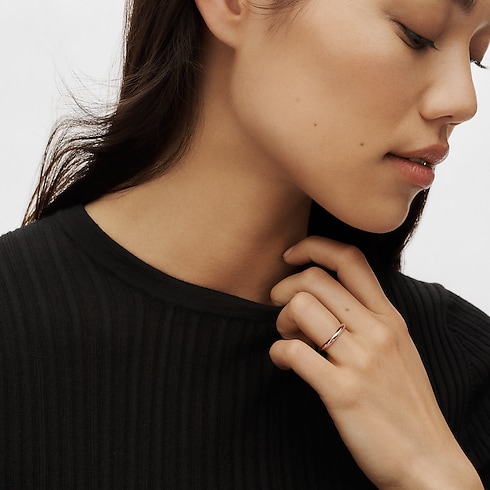 The LV Diamonds wedding band marks an emotional milestone with powerful grace. Cast from 18-karat pink gold and with a shank shaped like a V, this finely crafted ring is designed for both women and men. It can be worn as a wedding band as well as an everyday ring combined with other jewellery pieces. A secret diamond is hidden on the band’s inner surface, adding special meaning to this jewel, which may be customised, if desired, with an engraved date, message or initials.