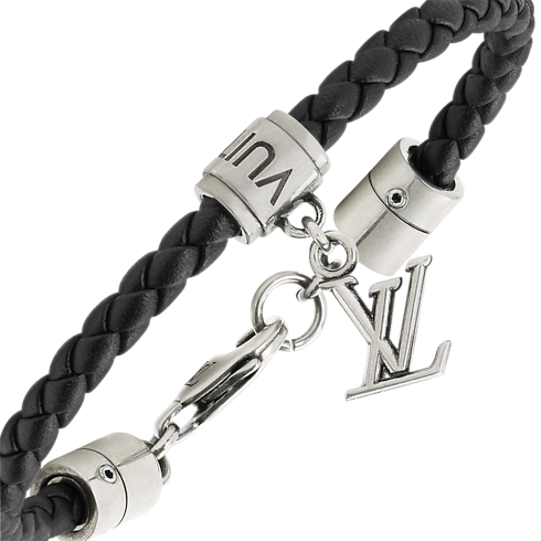 Made in Spain, the LV Dimension braided bracelet mixes timeless elements with luxurious craftsmanship. A black leather braided strap, capped with a palladium-toned hook closure, and an understated, engraved charm effortlessly come together to achieve a contemporary look. It is sure to become a daily staple.