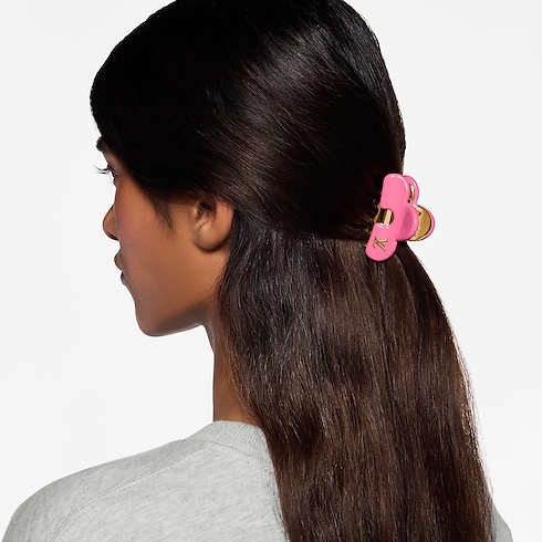 The playful feminine style of the LV hair clip makes it a striking addition to any look. Crafted in pink zamak, its shape evokes the iconic rounded Monogram Flower, accented with the LV Initials for an extra House flourish. An eye-catching, practical accessory, perfect for keeping the hair in place with a touch of signature flair.