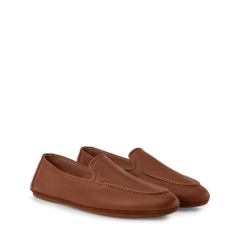 The LV Horizon slipper is crafted from ultra-soft napa lambskin, ensuring exceptional comfort. In addition, its sacchetto construction, a testament to the House's shoemaking know-how, provides lightness and flexibility, making this an essential of elegant travel. It bears the LV Initials on the side and the Louis Vuitton Paris signature on the heel.