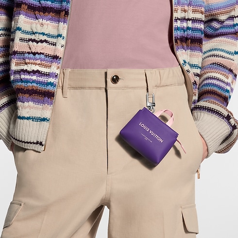 The LV Mini Shopper Bag charm transforms the iconic House tote into an enchantingly sized keepsake. Its pleasingly roomy proportions hold earphones or similarly small items yet comfortably accessorize a belt loop or key chain. Coming for the Spring-Summer 2026 show in a vibrant purple color with pale pink handles and a silver-toned hook.
