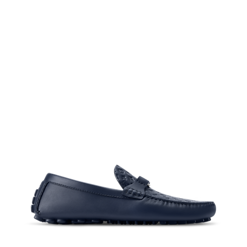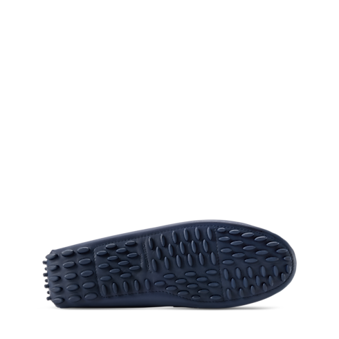 The LV Silverstone moccasin is crafted from smooth calf leather which, on the hand-stitched vamp, is embossed with the Louis Vuitton Monogram pattern. This car shoe has a lightweight tubular construction and a supple outsole with rubber nubs replicating the squares of Damier canvas. The vamp is signed with an LV Initials accessory.