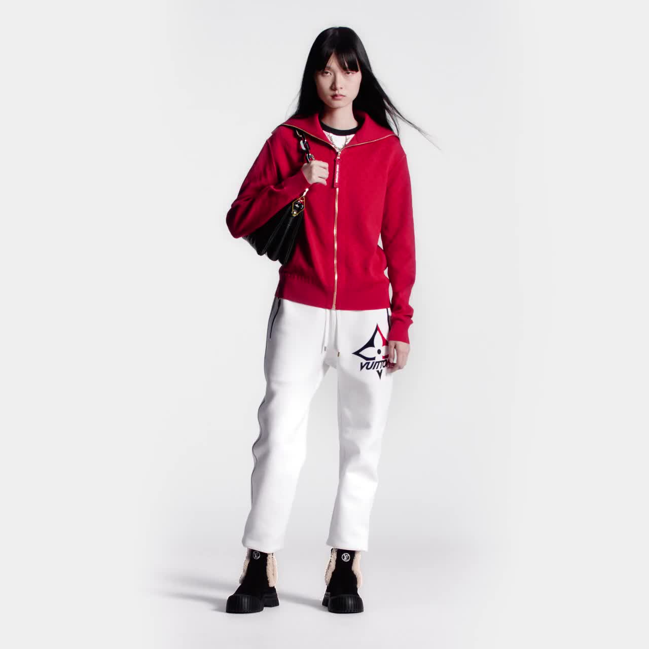 These jogging pants are fresh and sporty in soft cotton interlock jersey detailed with contrasting ribbed ankles and fastened side pockets for a graphic touch. Red and blue topstitching on the outer seams subtly nods to the French tricolor, while an oversized seasonal LV snowflake print signs the left hip.