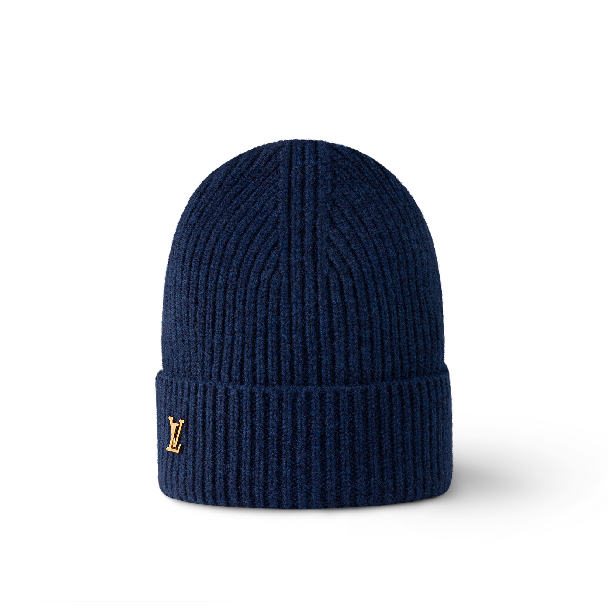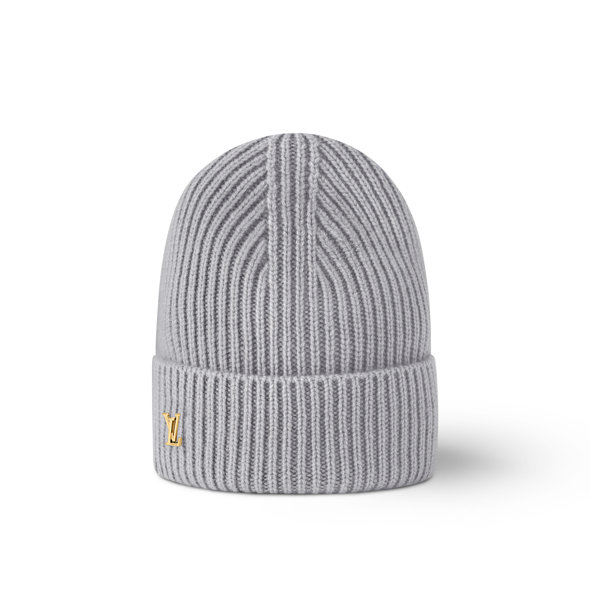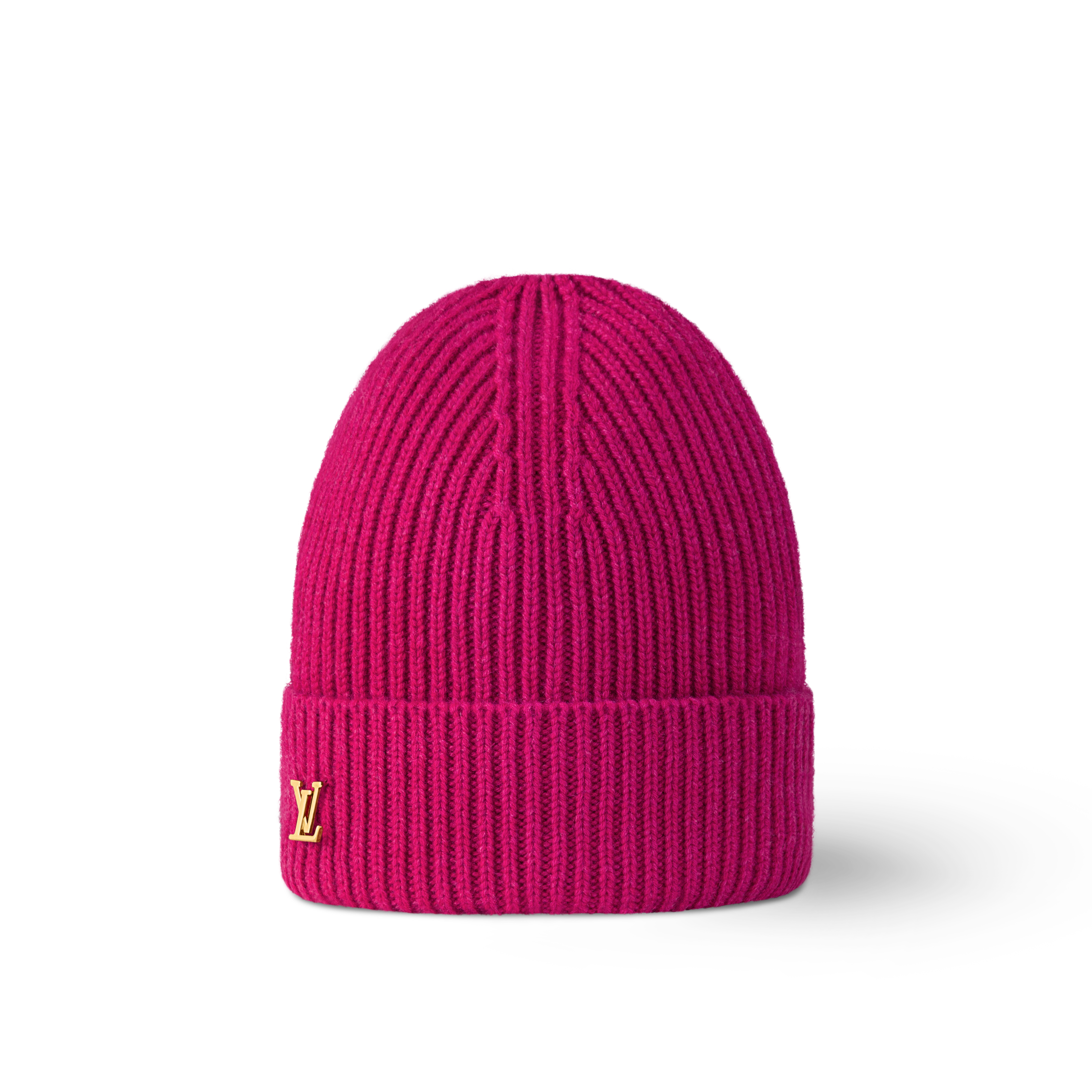 The ribbed LV Spark beanie features a classic construction finished with a polished hardware accent. A turn-up brim enhances the casual aesthetic, while LV Initials in gleaming hardware add a distinguished House detail. This pure cashmere piece is offered in a range of timeless colors for versatile wear.
