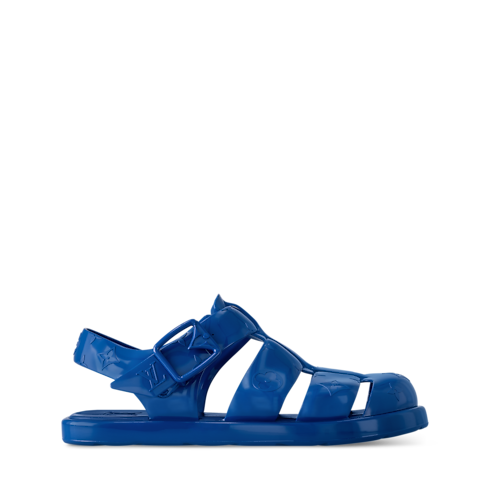 The LV Venice sandal is a fisherman-style model in rubber decorated with the House's signature Monogram pattern. It features a single strap, which is adjusted with a Monogram Flower buckle. This model has a padded insole and an extremely lightweight rubber outsole, which make it particularly comfortable to wear.
