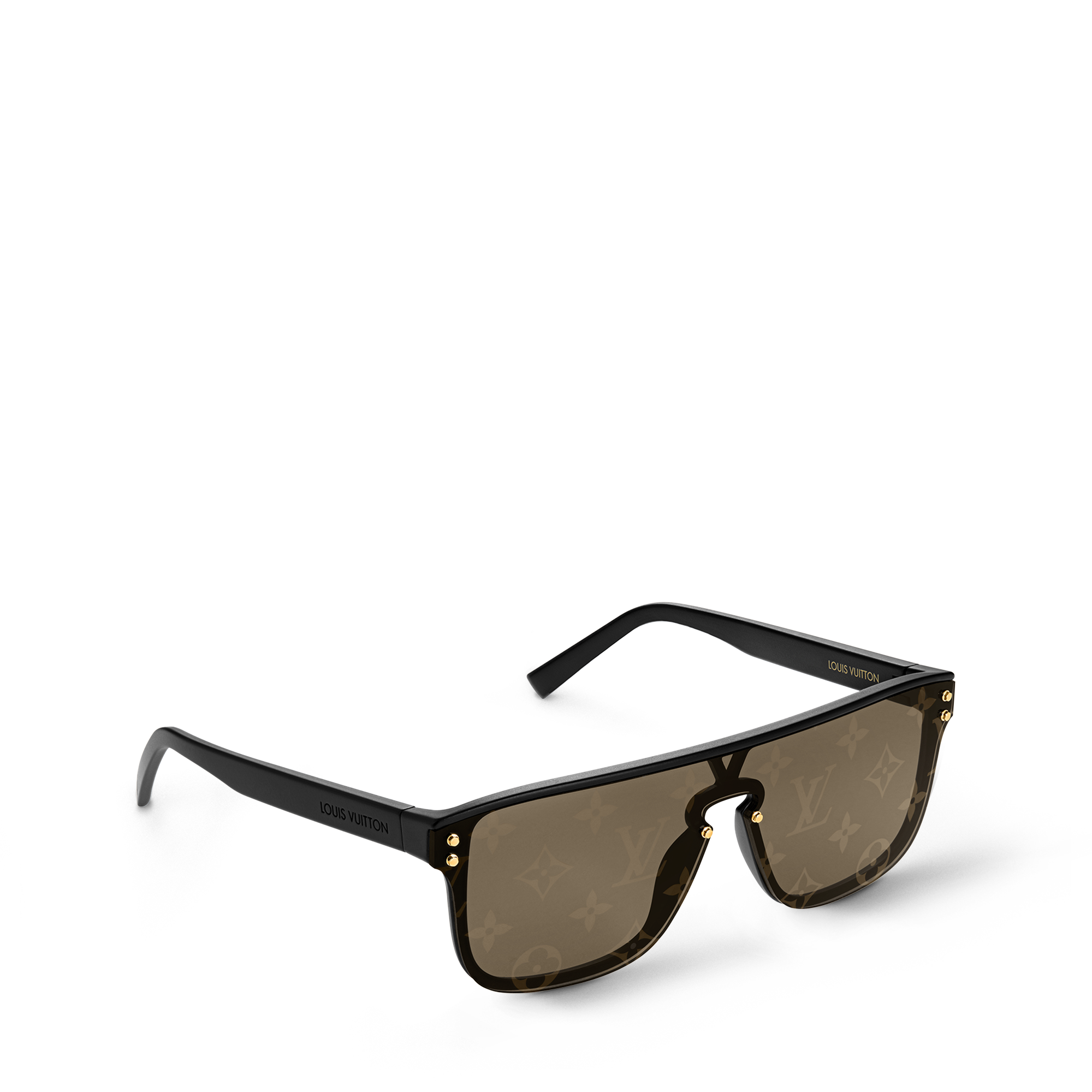 Cutting edge craftsmanship and urban style combine to create the LV Waimea sunglasses. This updated version of a cult House style features the familiar Monogram pattern on the lenses, displayed in a statement-making large print. Hardware studs on the front and a Louis Vuitton signature on the temples add refined finishing touches.