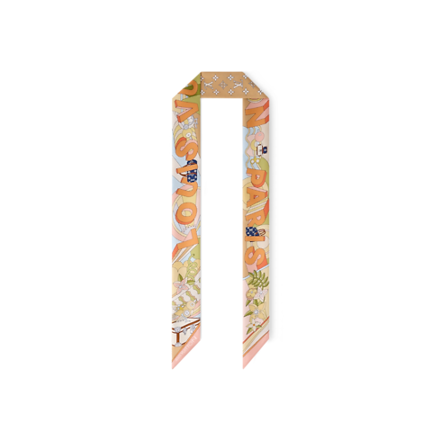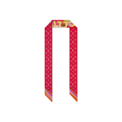 The all-silk LV Wonderland BB bandeau is a colorful ode to creativity and craftsmanship. Its eye-catching pattern depicts a whimsical futuristic landscape accented with Monogram Flowers and iconic Louis Vuitton luggage creations. Outsized letters with a striking 3D effect spell out the House’s name, adding an original signature to this elegant contemporary accessory.