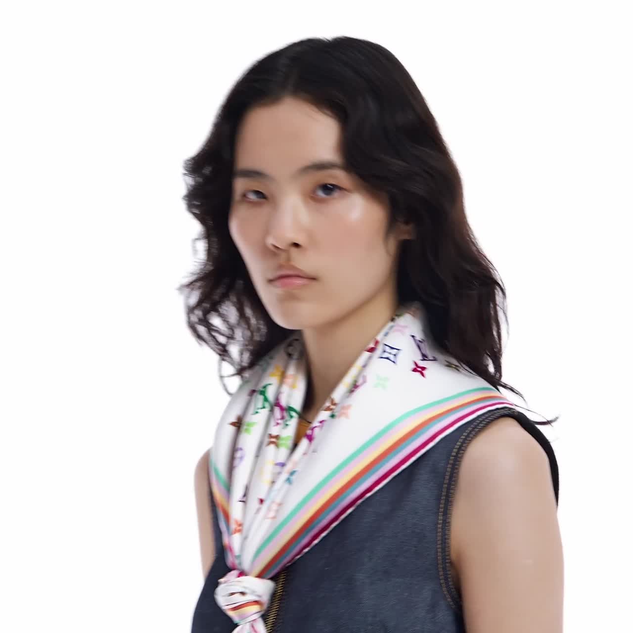 The LV x TM Monogram Multicolor square comes from Louis Vuitton’s creative collaboration with renowned Japanese artist Takashi Murakami. This sumptuous accessory is spun from lustrous pure silk and is printed with Murakami’s reinterpretation of the signature House pattern. Rendered in a vibrant palette of 33 high-definition hues, the motifs stand out brilliantly against a pristine white background. A contrasting border frames the piece like a work of art.