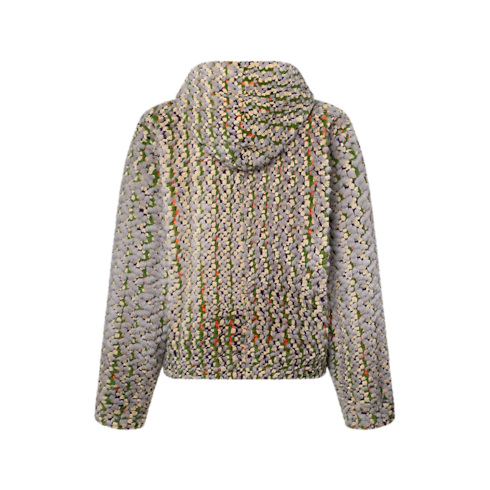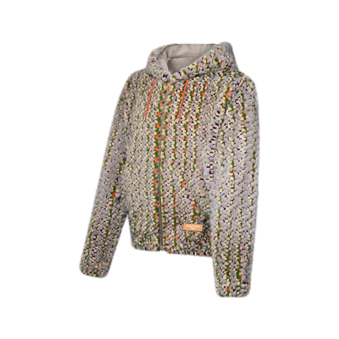 This fluid mink hooded blouson from the Spring-Summer 2026 runway transforms a sporty silhouette into a showcase of fur craftsmanship. Its intarsia Micro Damier motif, crafted from mink in varying lengths and vibrant hues, creates a rich, undulating surface. Technical orange drawcords add an outdoor accent, while a VVN-colored signature patch nods to the House’s trunk-making heritage.